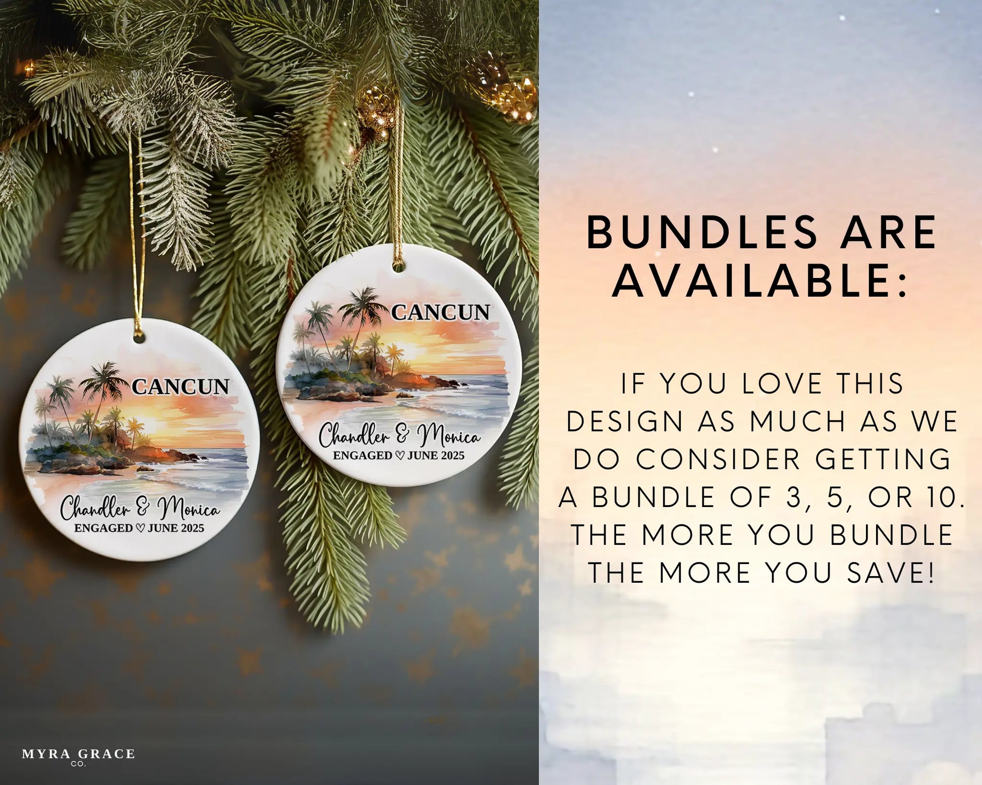 Cancun Engagement Custom Ornament, Cancun Bauble, Mexico