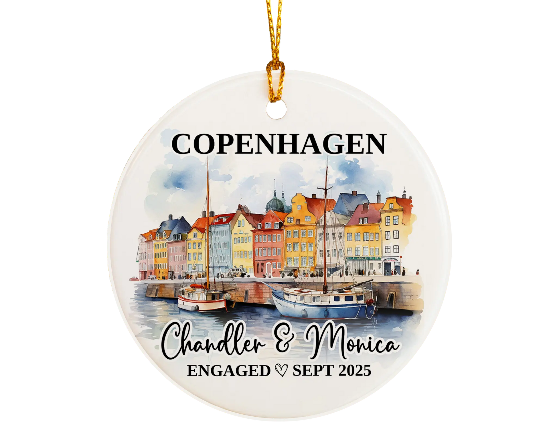 Copenhagen Engagement Custom Ornament, Copenhagen Bauble, Denmark